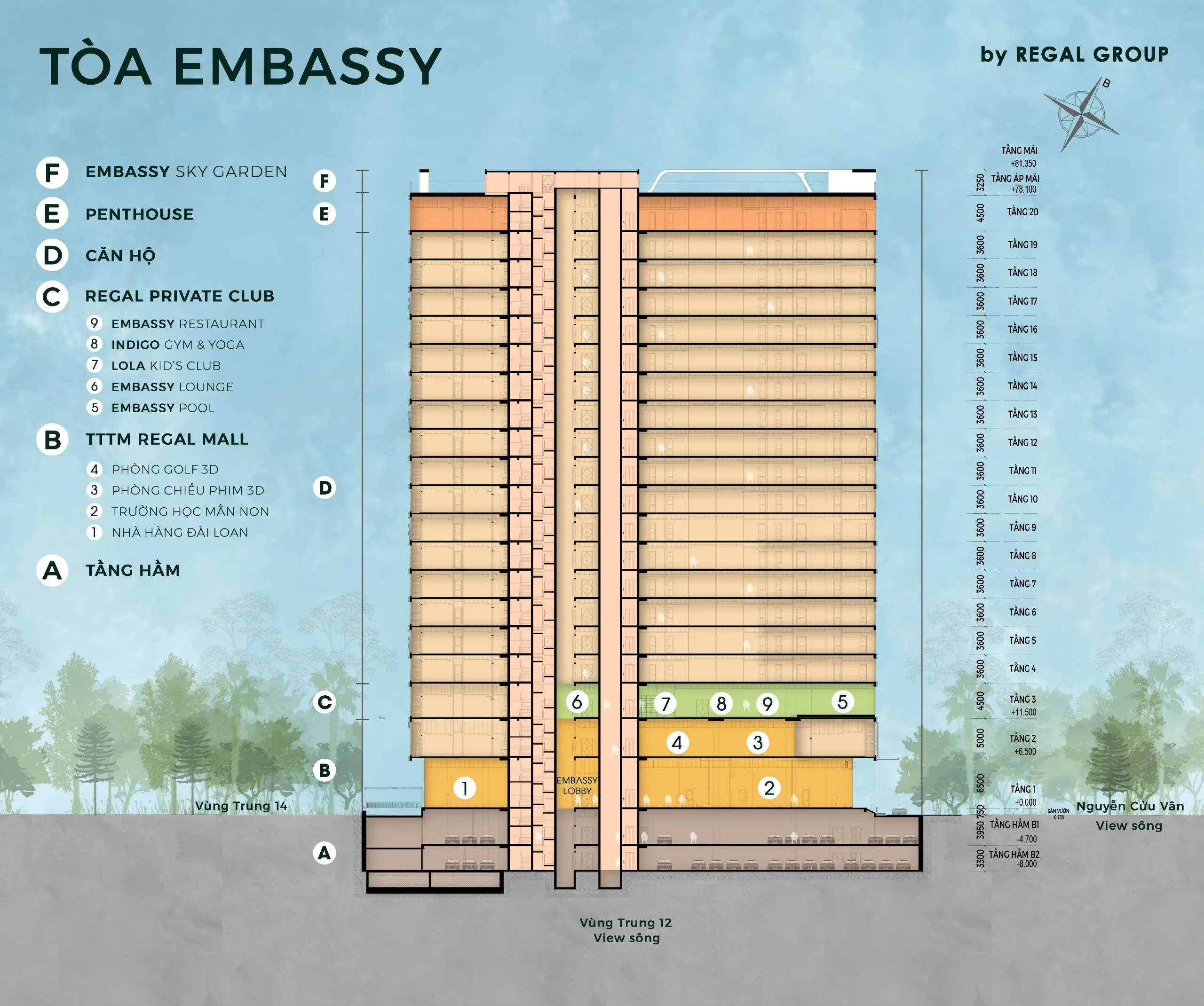 • Sản phẩm: Gồm 2 khối C1 và C2, 20 tầng nổi. Trong đó có 02 tầng hầm, 02 tầng thương mại cho thuê, 18 tầng căn hộ thương mại, 01 tầng hồ bơi, phòng Gym & Spa…